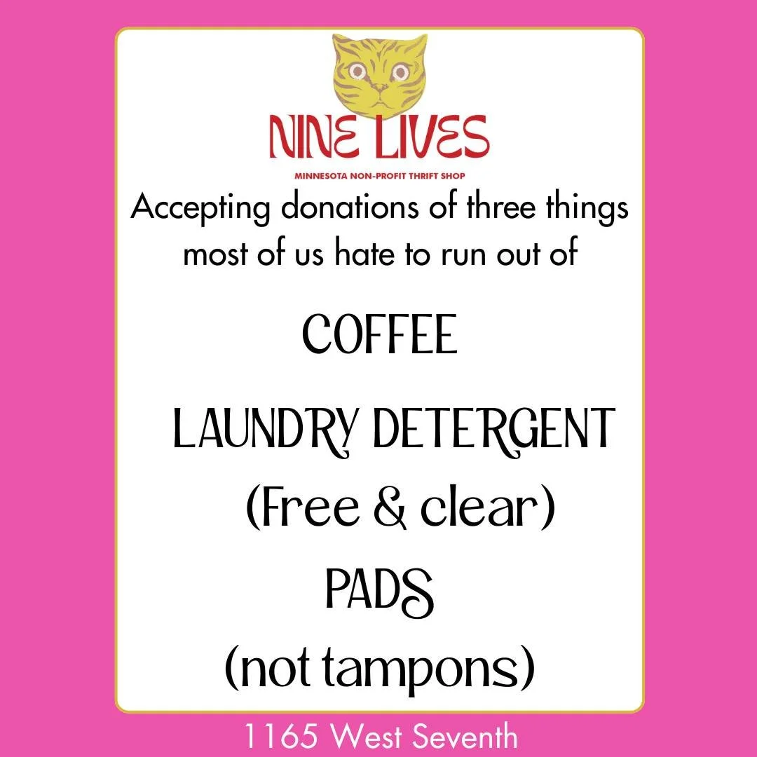 Donations are accepted only during our operating hours, and only two paper grocery bags at time.